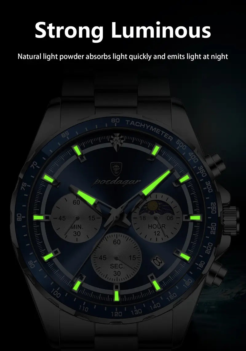 POEDAGAR Men's Stainless Steel Chronograph Watch