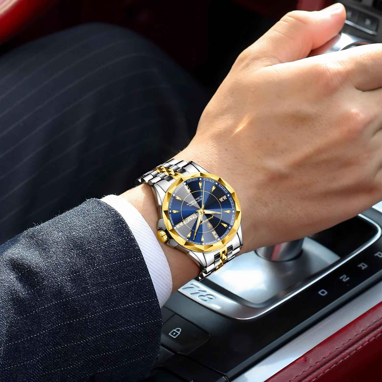 A push-button hidden clasp secures the stainless-steel strap with seamless precision, offering both comfort and a sophisticated fit. Luminous hands, day-date display, and a balanced dial design make it a perfect companion — whether it’s an important meeting, a night out, or a casual day in style.